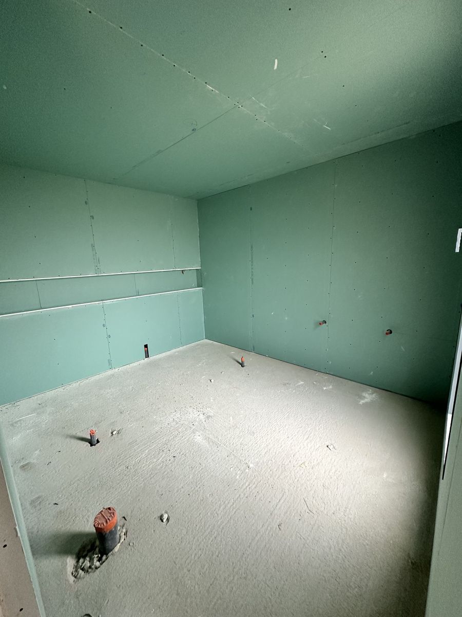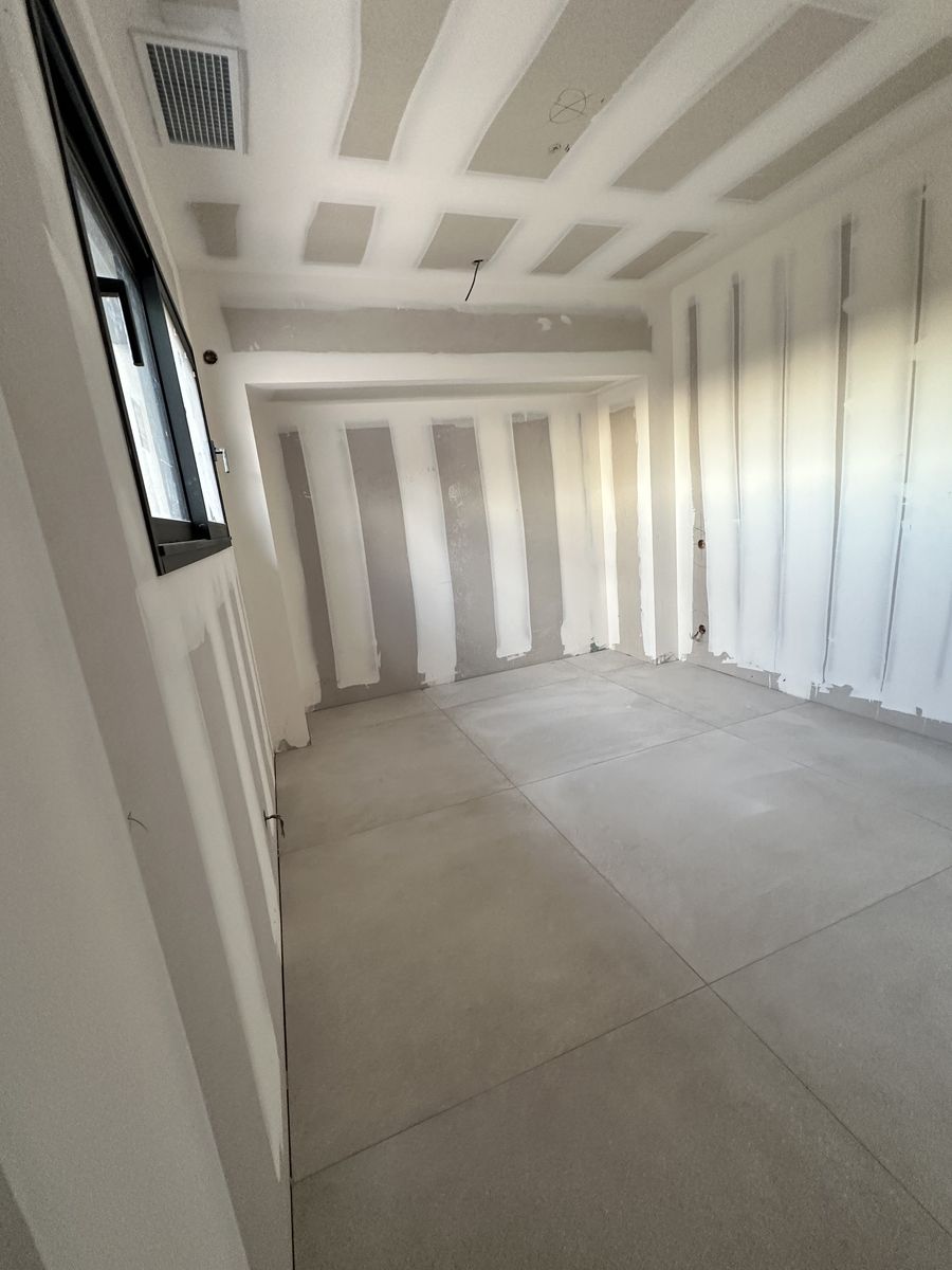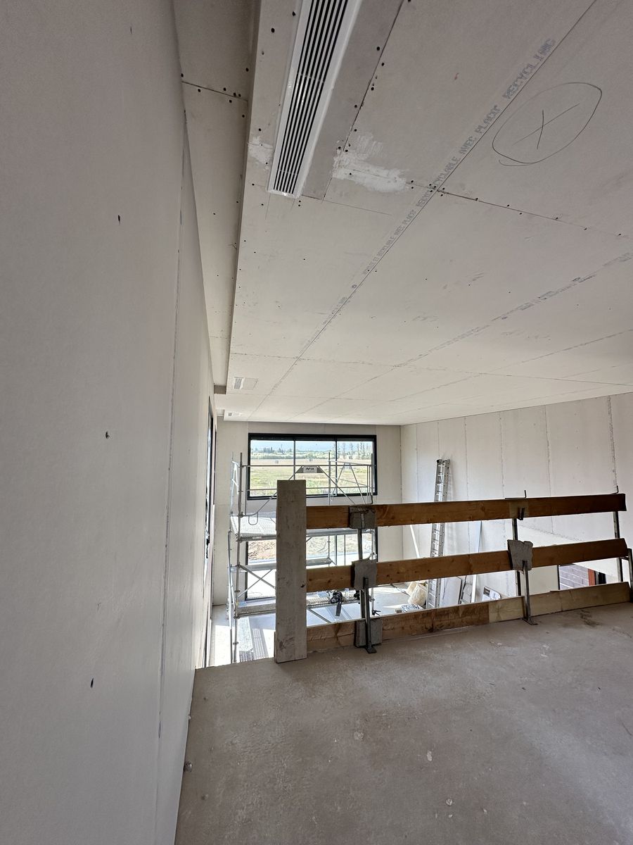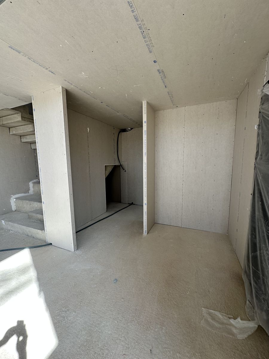 Le chantier inclut plusieurs éléments décoratifs en placo ainsi que des encoches intégrées au plafond pour l’installation de tringles à rideaux.