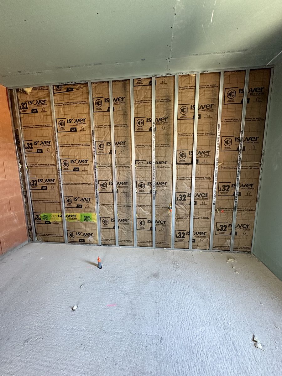 L’ensemble des murs a été doublé en système Optima, y compris les zones en grande hauteur sous plafond.