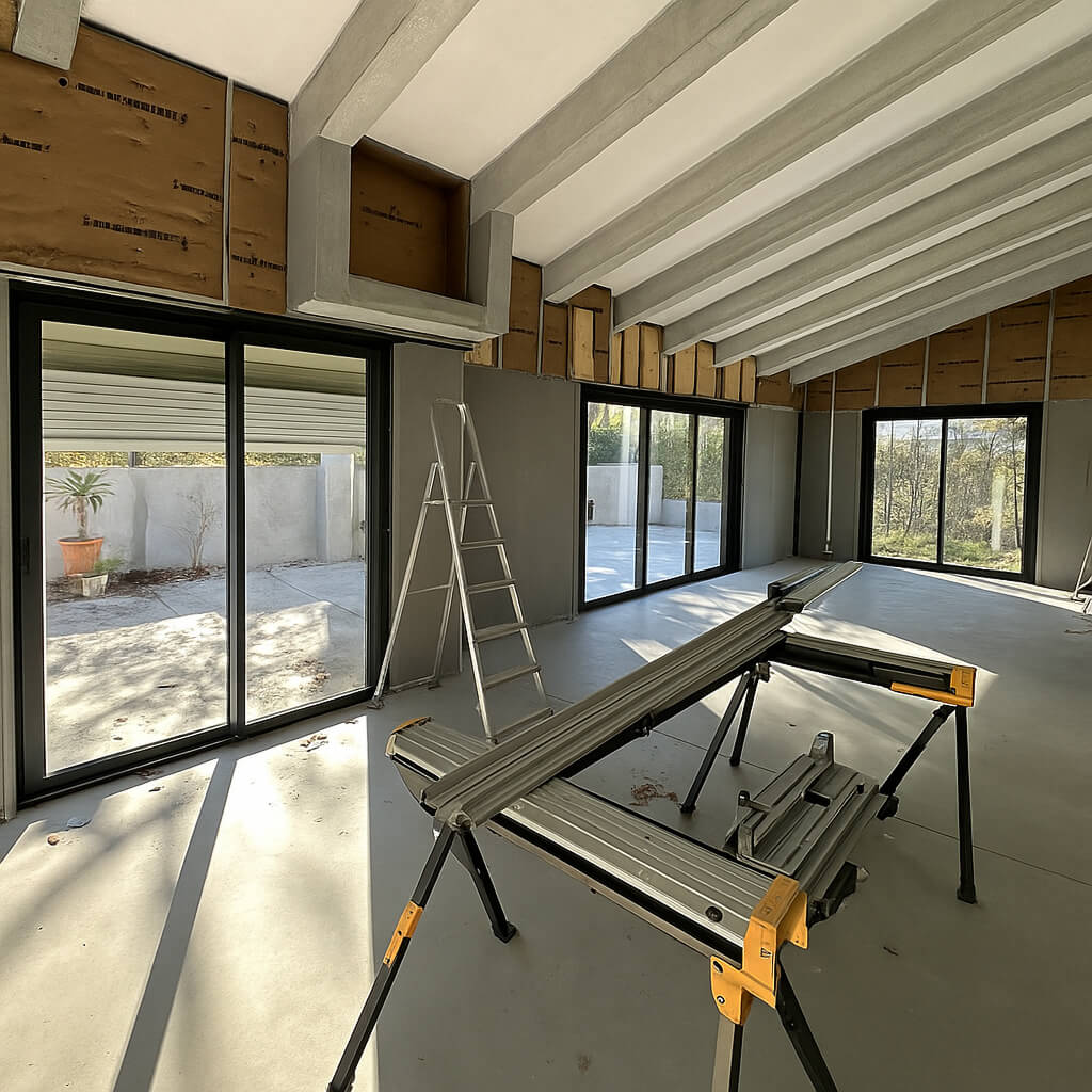Chantier de rénovation complet dans une maison des années 80, avec réaménagement et modernisation des volumes intérieurs.