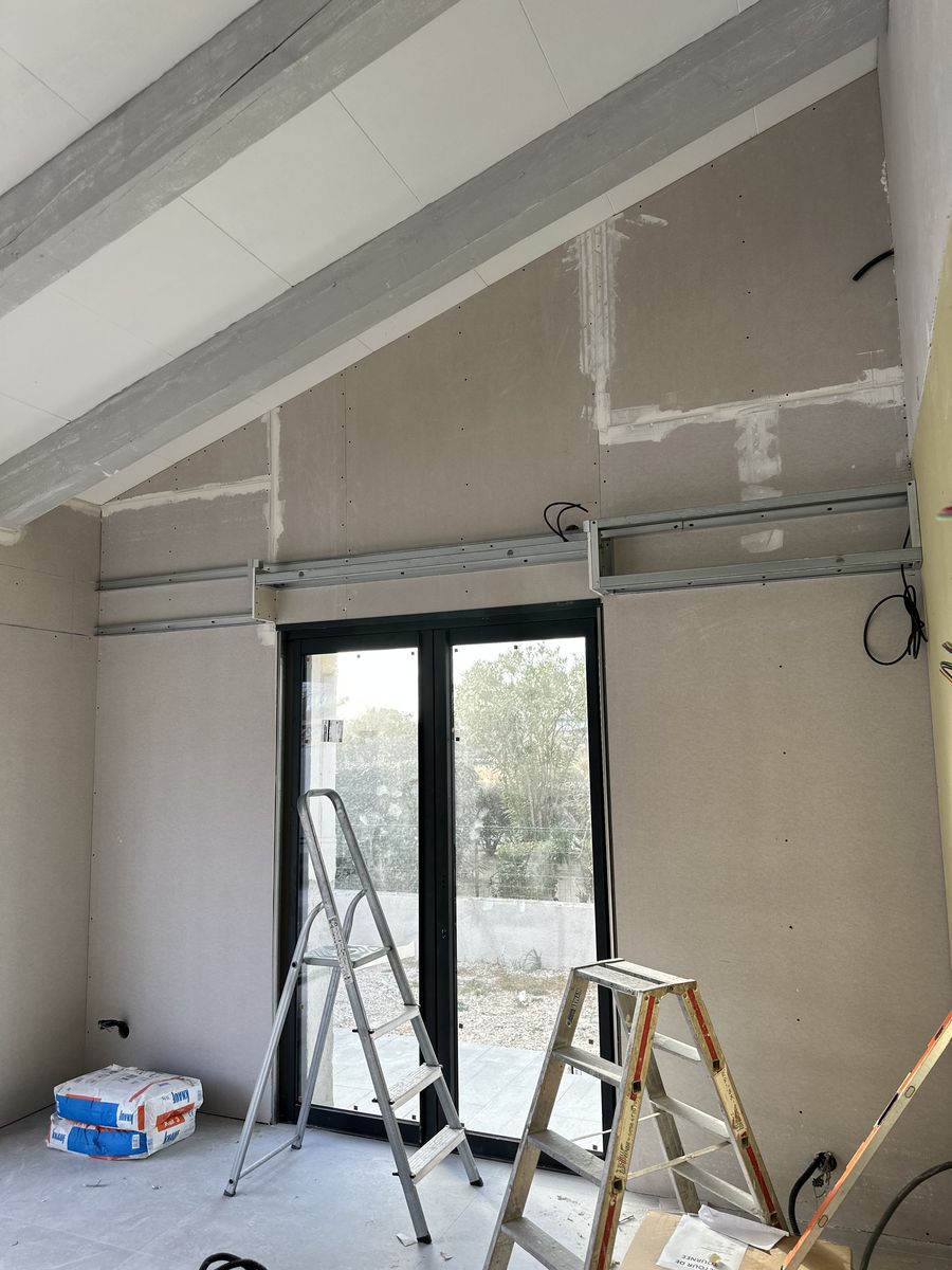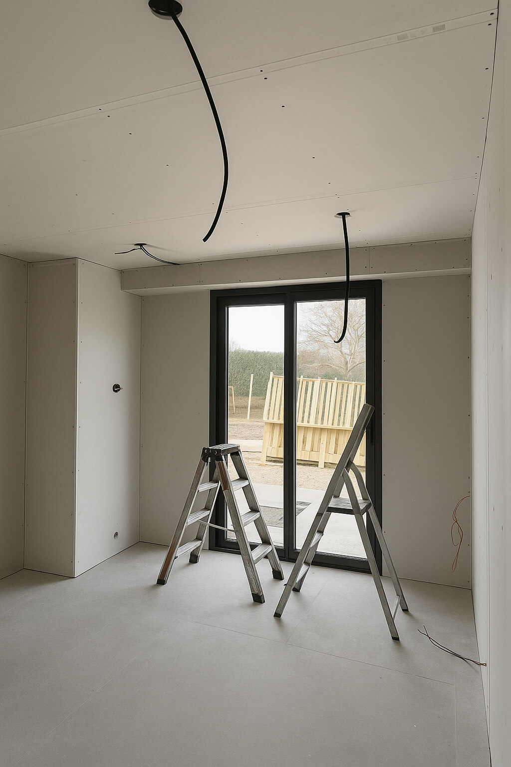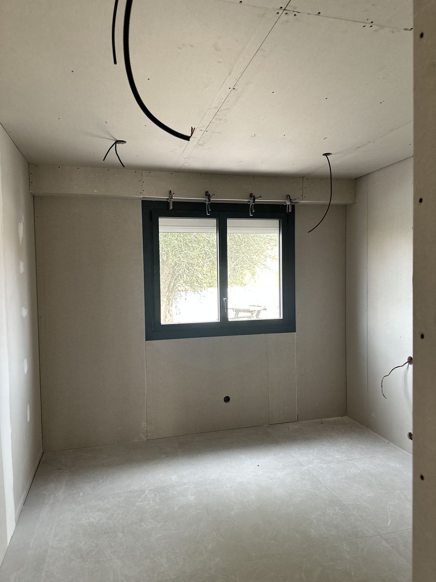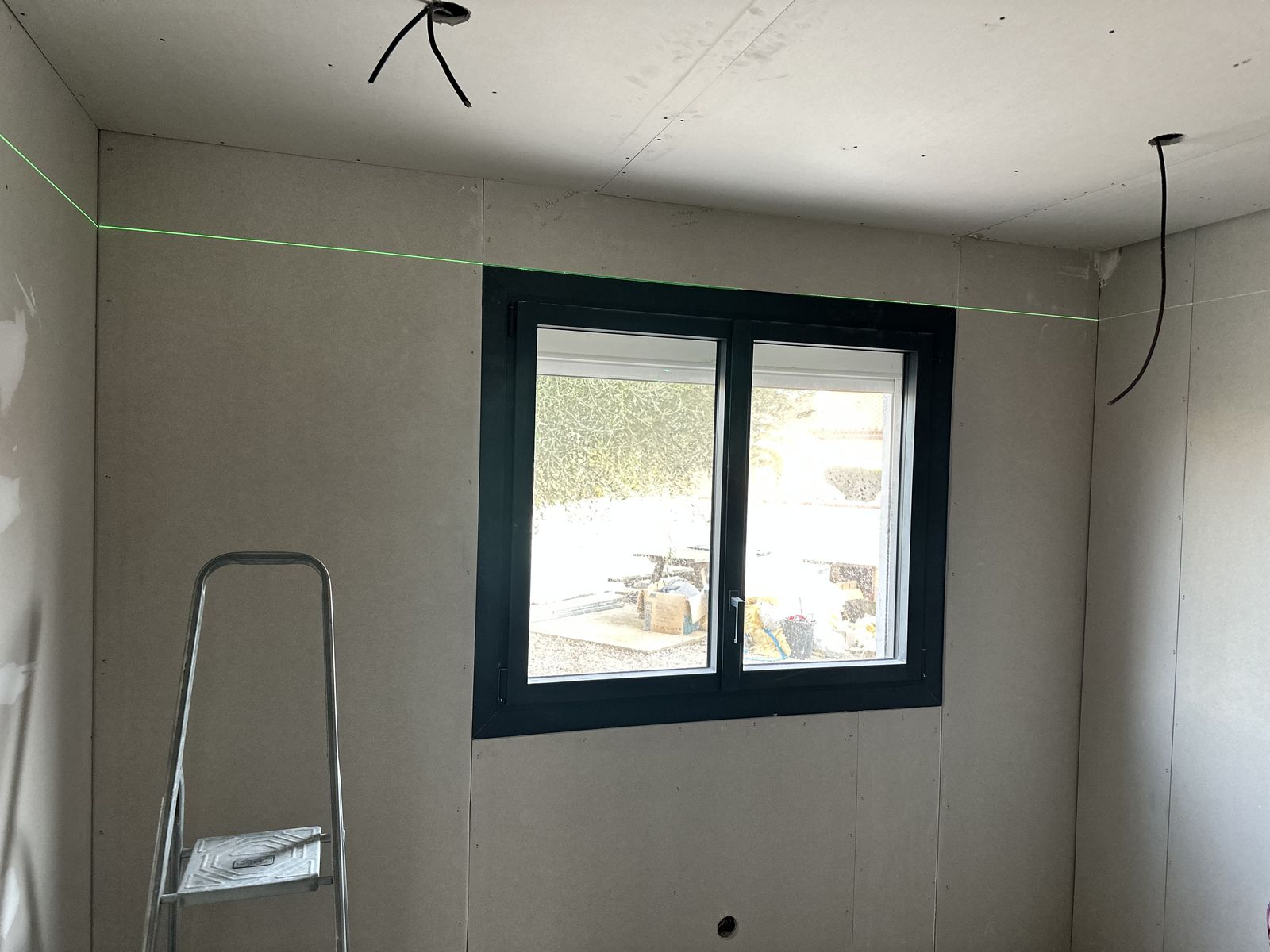 Doublage de tous les murs en placo style, apportant un gain thermique notable et une finition soignée.